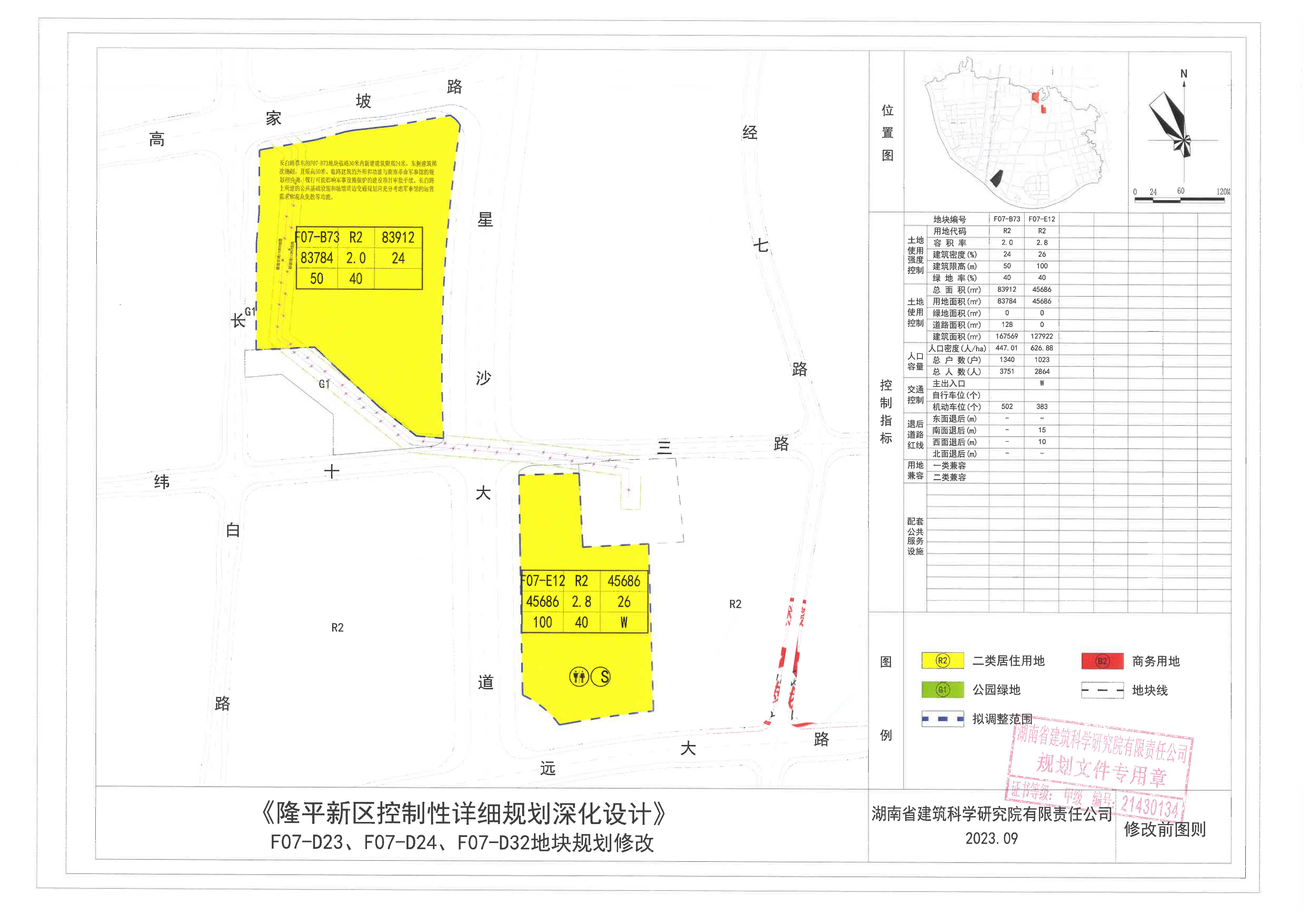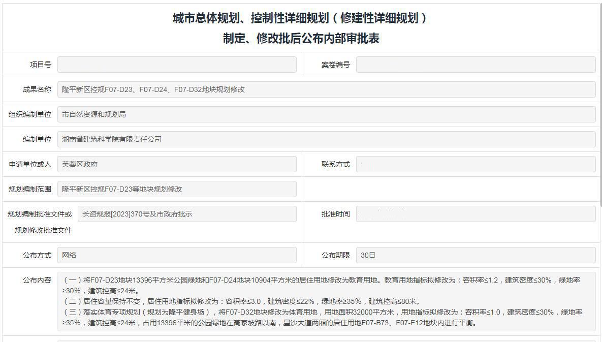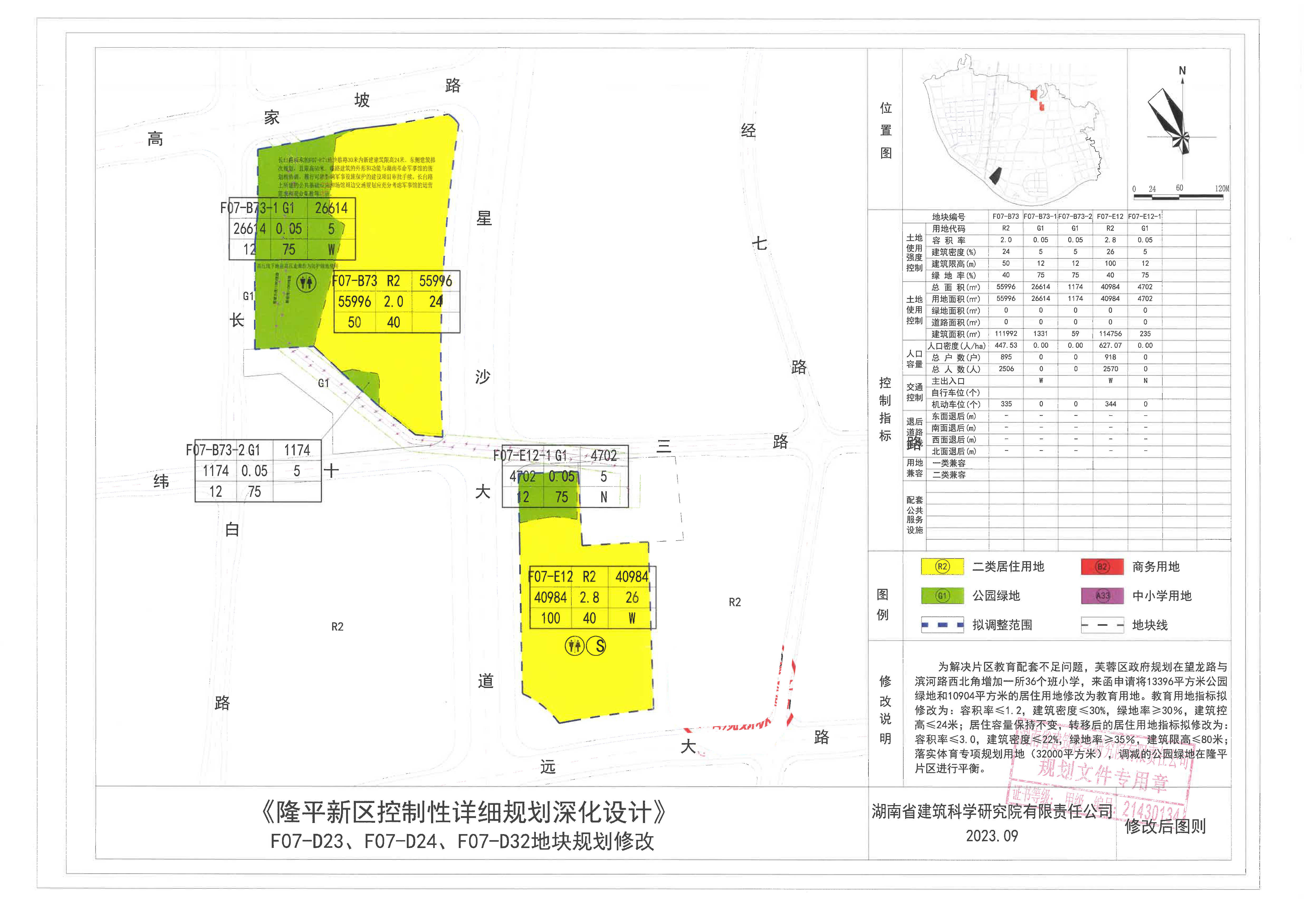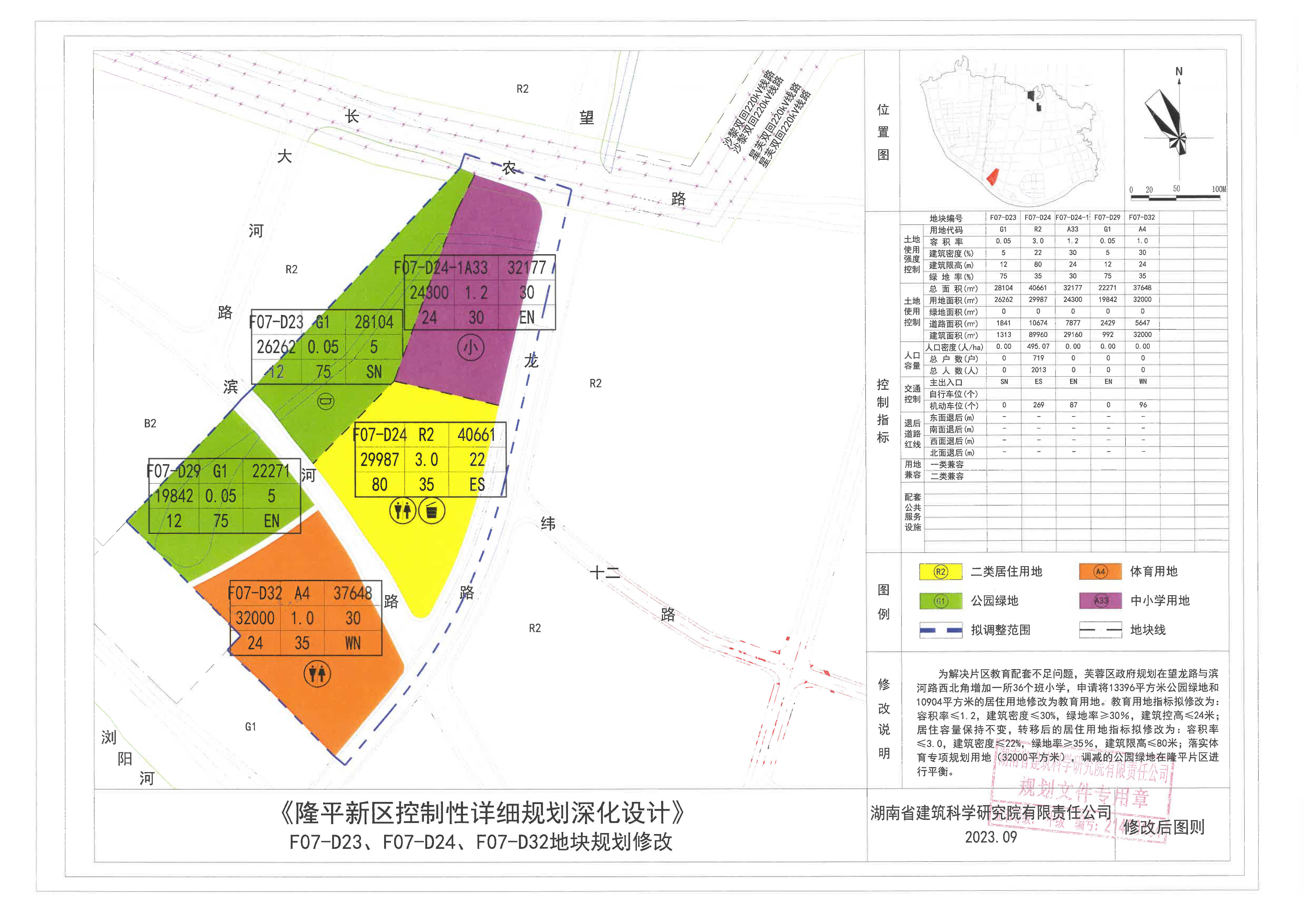 隆平新区控规F07-D23、F07-D24、F07-D32地块规划修改 批后公布