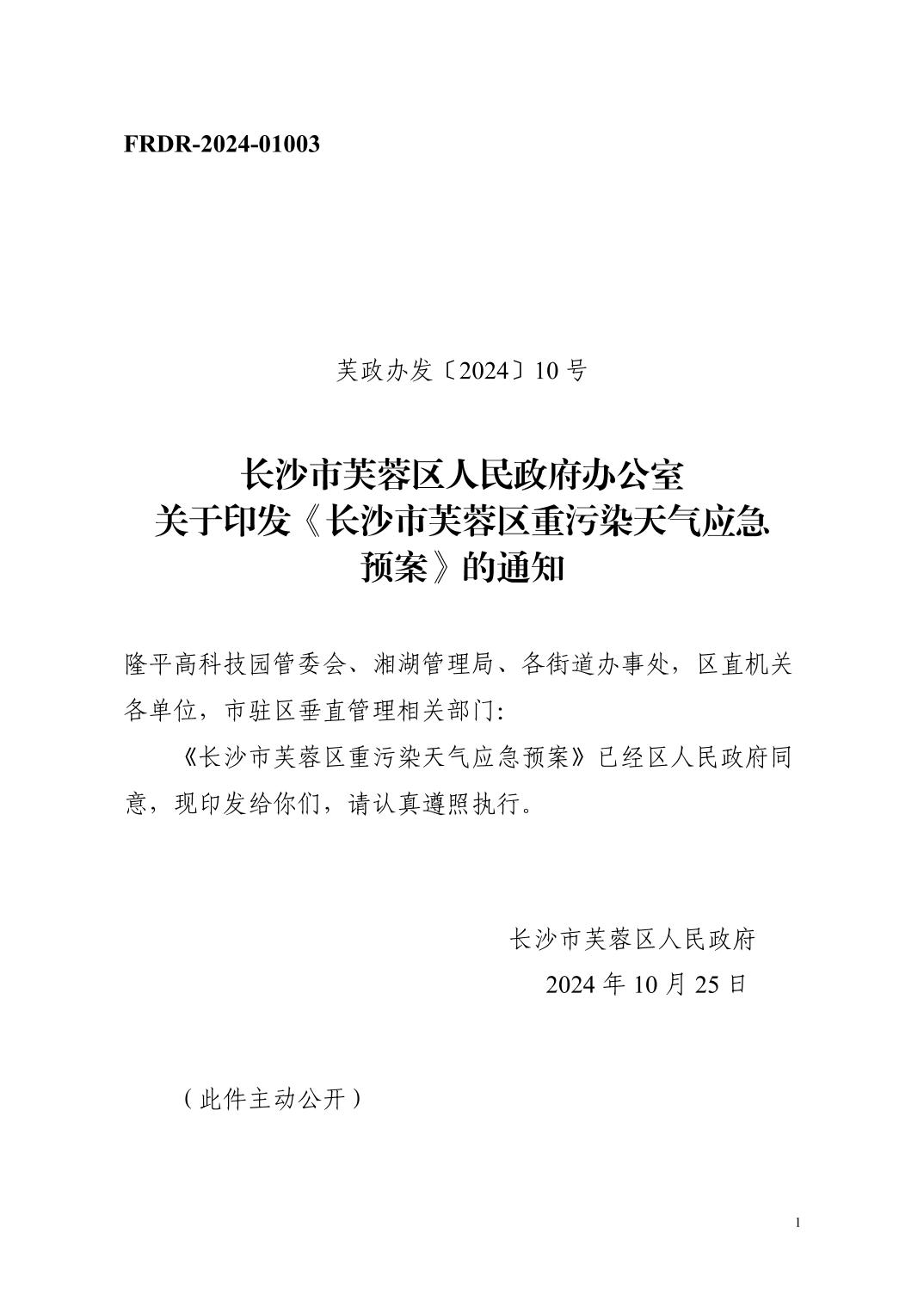 长沙市芙蓉区龙8国际办公室关于印发《长沙市芙蓉区重污染天气应急预案》的通知