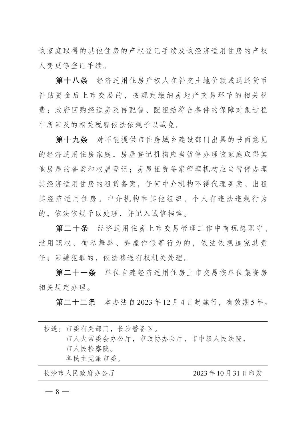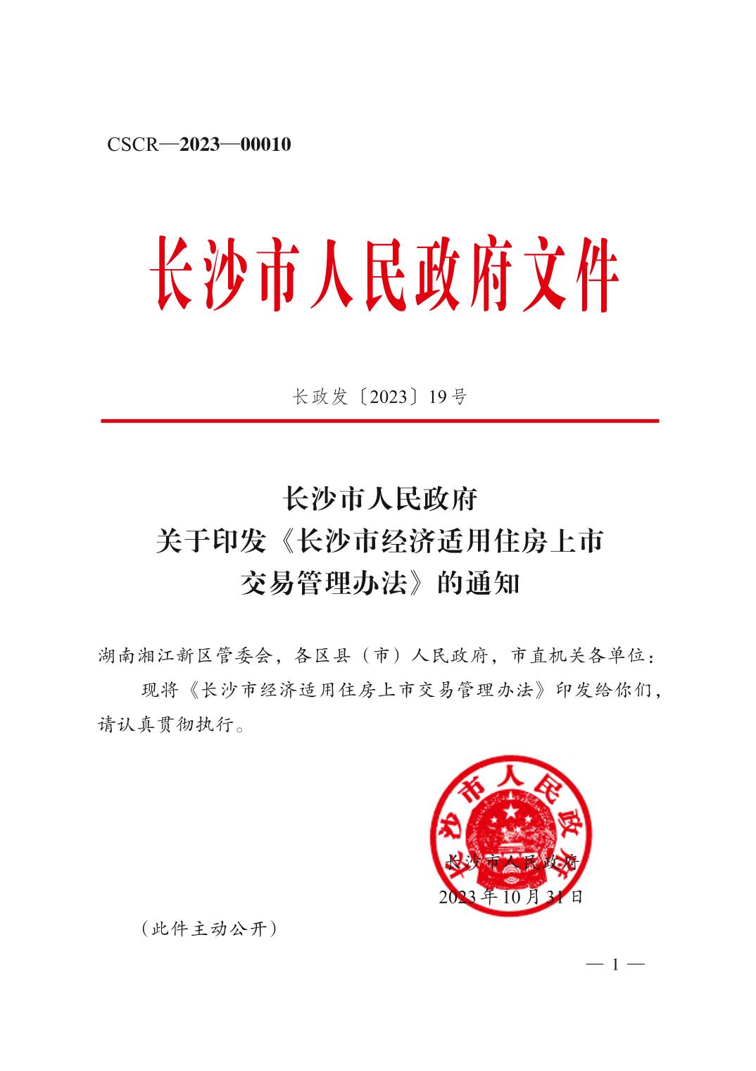 长沙市龙8国际关于印发《长沙市经济适用住房上市交易管理办法》的通知