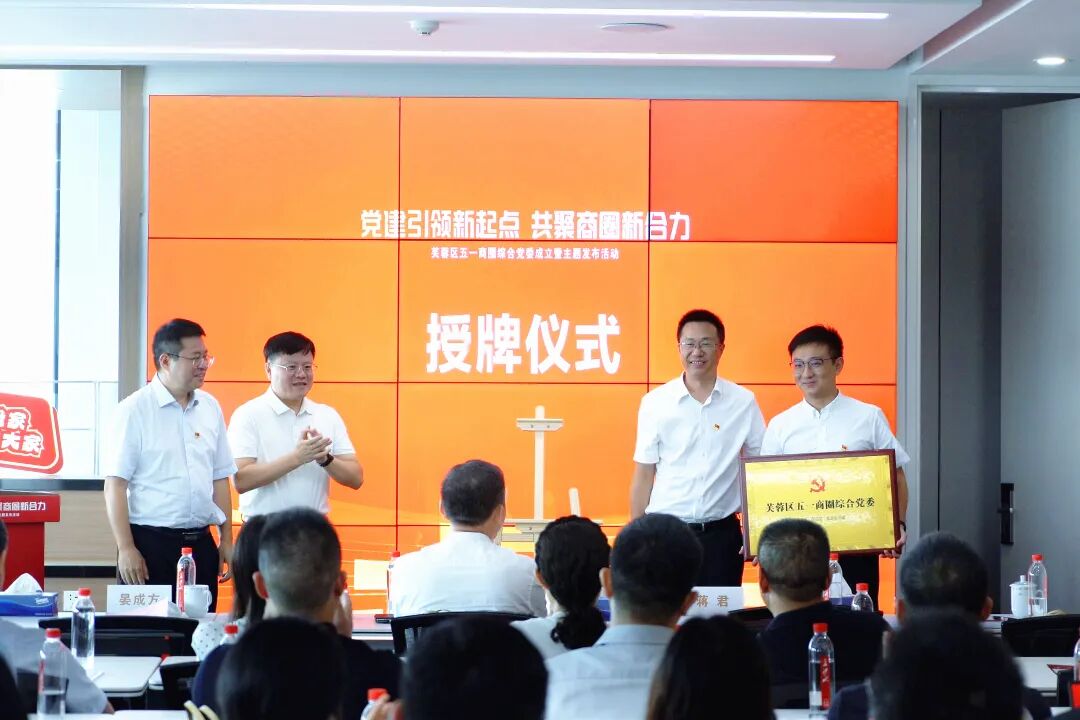 授牌仪式上,五一商圈综合党委正式揭牌成立,标志着商圈区域化党建工作进入新阶段。综合党委的成立积极响应了商圈企业、新就业群体和居民群众的共同期待,对强化党建引领、推动商圈高质量发展具有重要的带动作用。