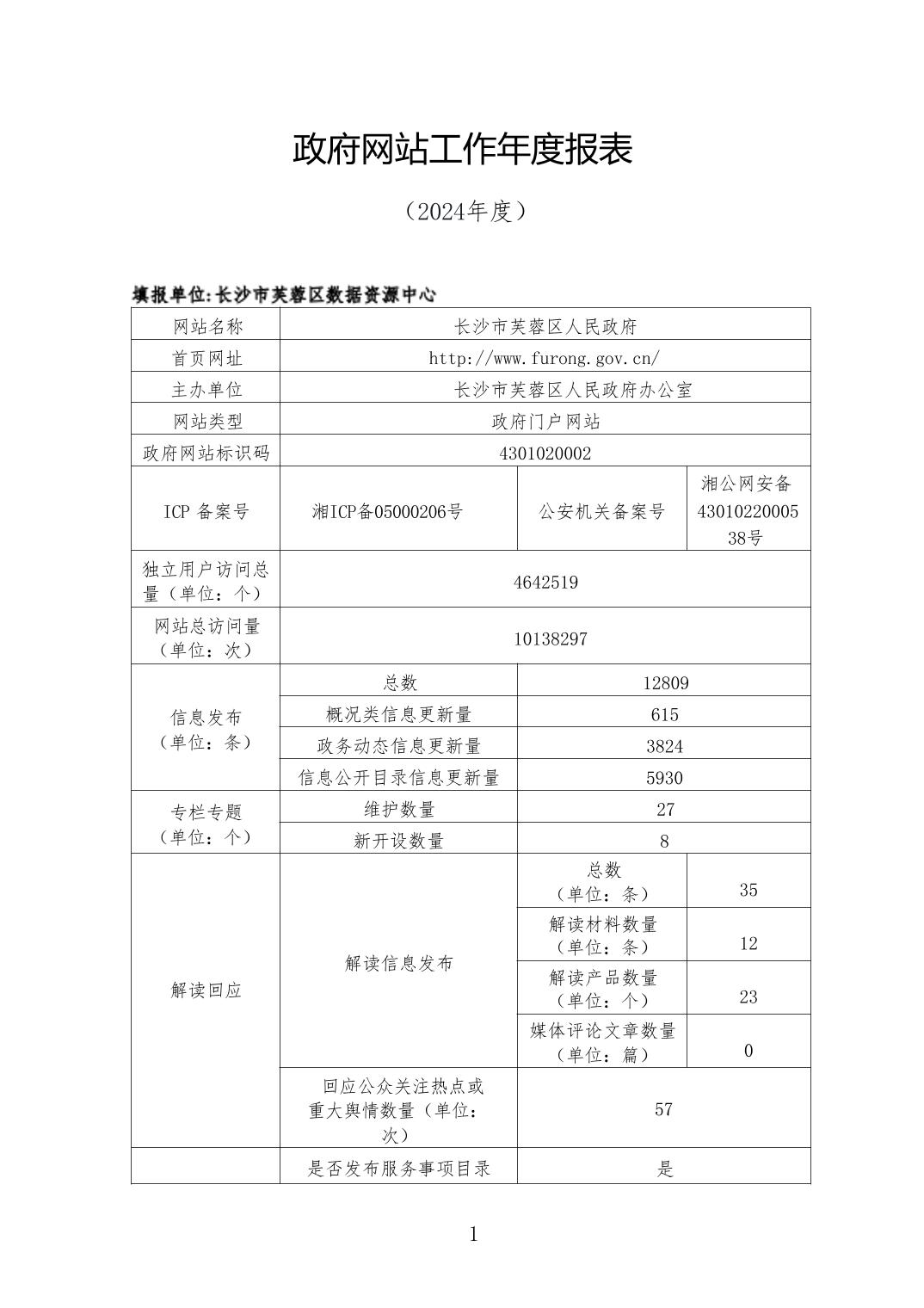 长沙市芙蓉区2024年度政府网站工作年度报表