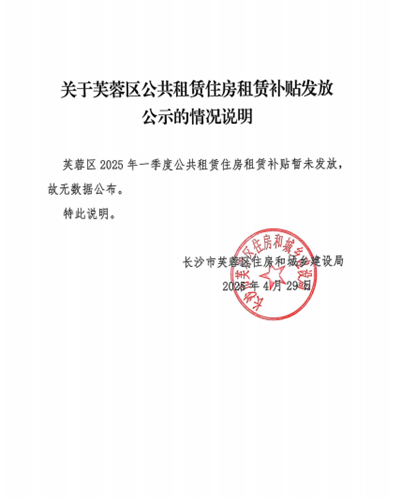 关于芙蓉区公共租赁住房租赁补贴发放公示的情况说明