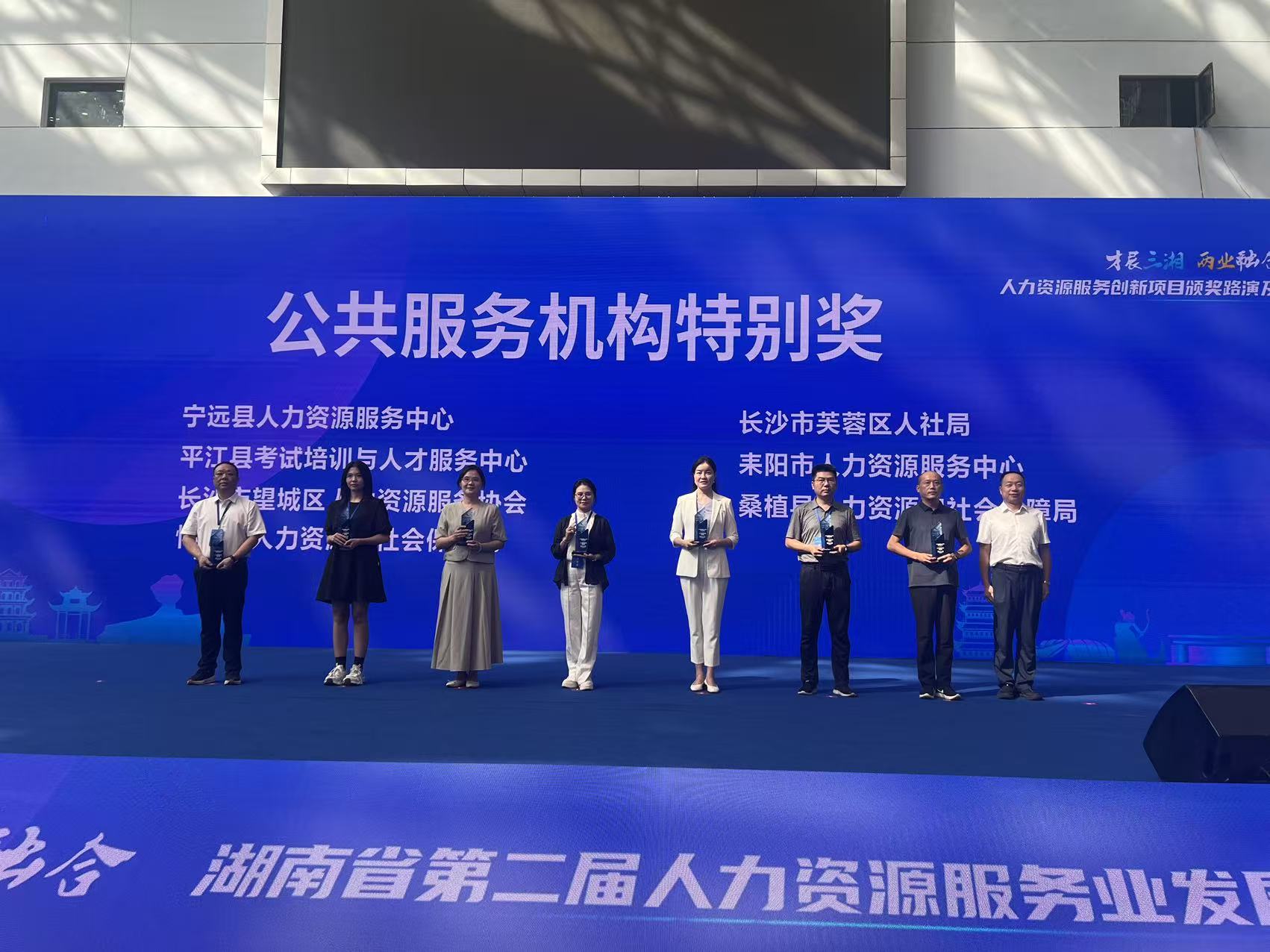 本次大会以“才展三湘 两业融合”为主题,聚焦人力资源服务与先进制造业深度融合,推动行业创新与区域协同发展。大会期间同步开展全省人力资源服务创新项目遴选决赛,经自主申报、专家评审,评选出公共服务机构特别奖7个,芙蓉区人社局为长沙人社部门唯一获奖单位。