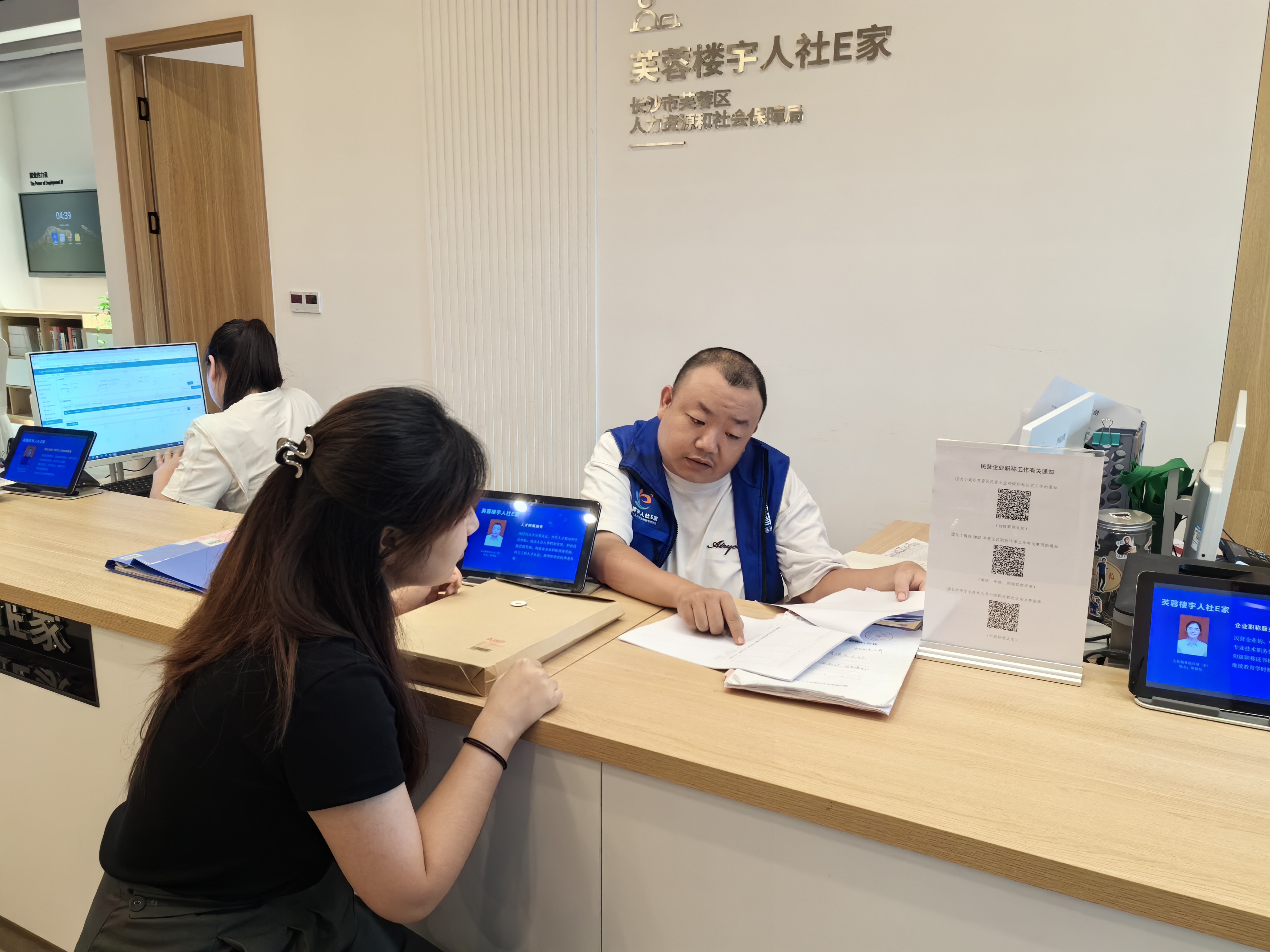 芙蓉楼宇人社E家工作人员指导楼宇企业人员办理职称评审业务