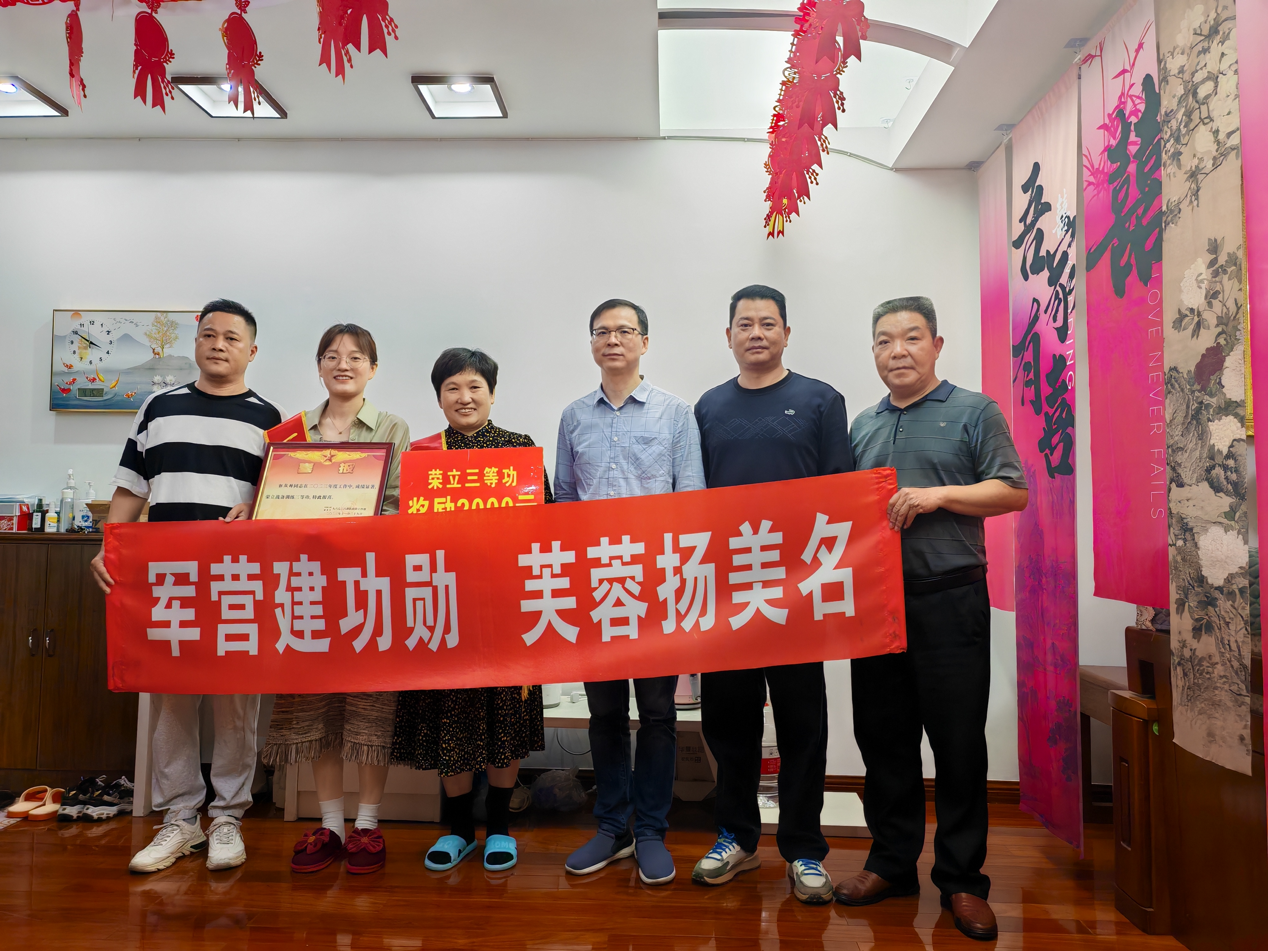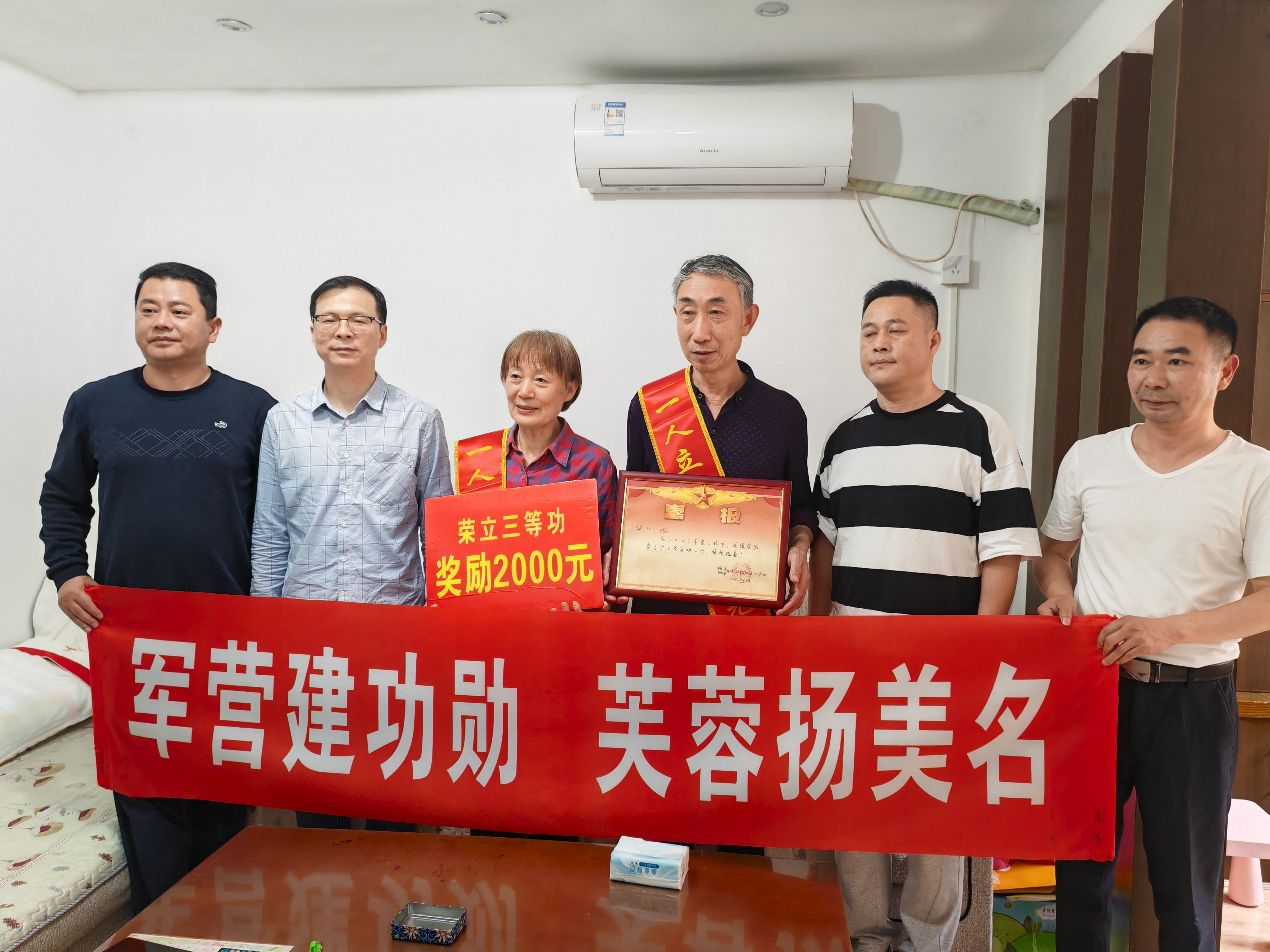 为进一步弘扬爱国拥军的光荣传统,切实增强军人的荣誉感、使命感和家属的自豪感,2024年4月15日,芙蓉区退役军人事务局组成报喜团为两名荣立三等功的现役军人家属送去立功喜报和慰问金。