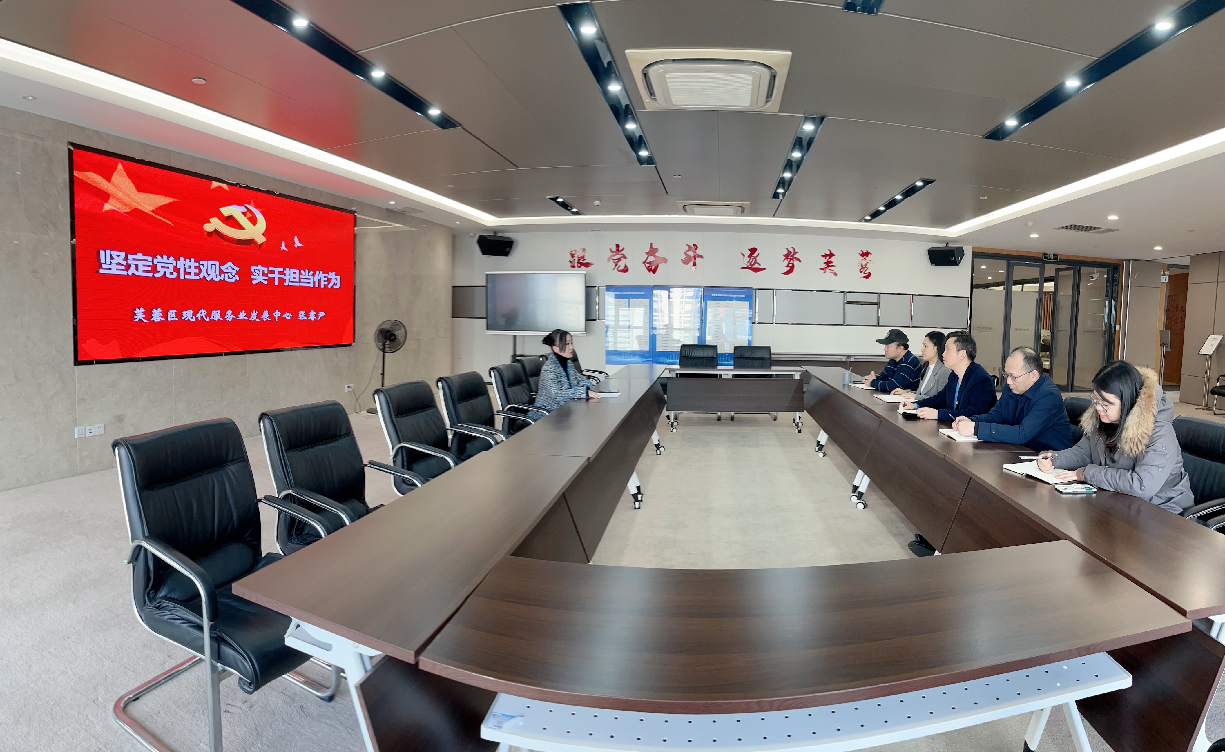 2023年12月28日下午,芙蓉区现代服务业发展中心全体党员干部在会议室开展“坚定党性信念 实干担当作为”专题微党课学习。