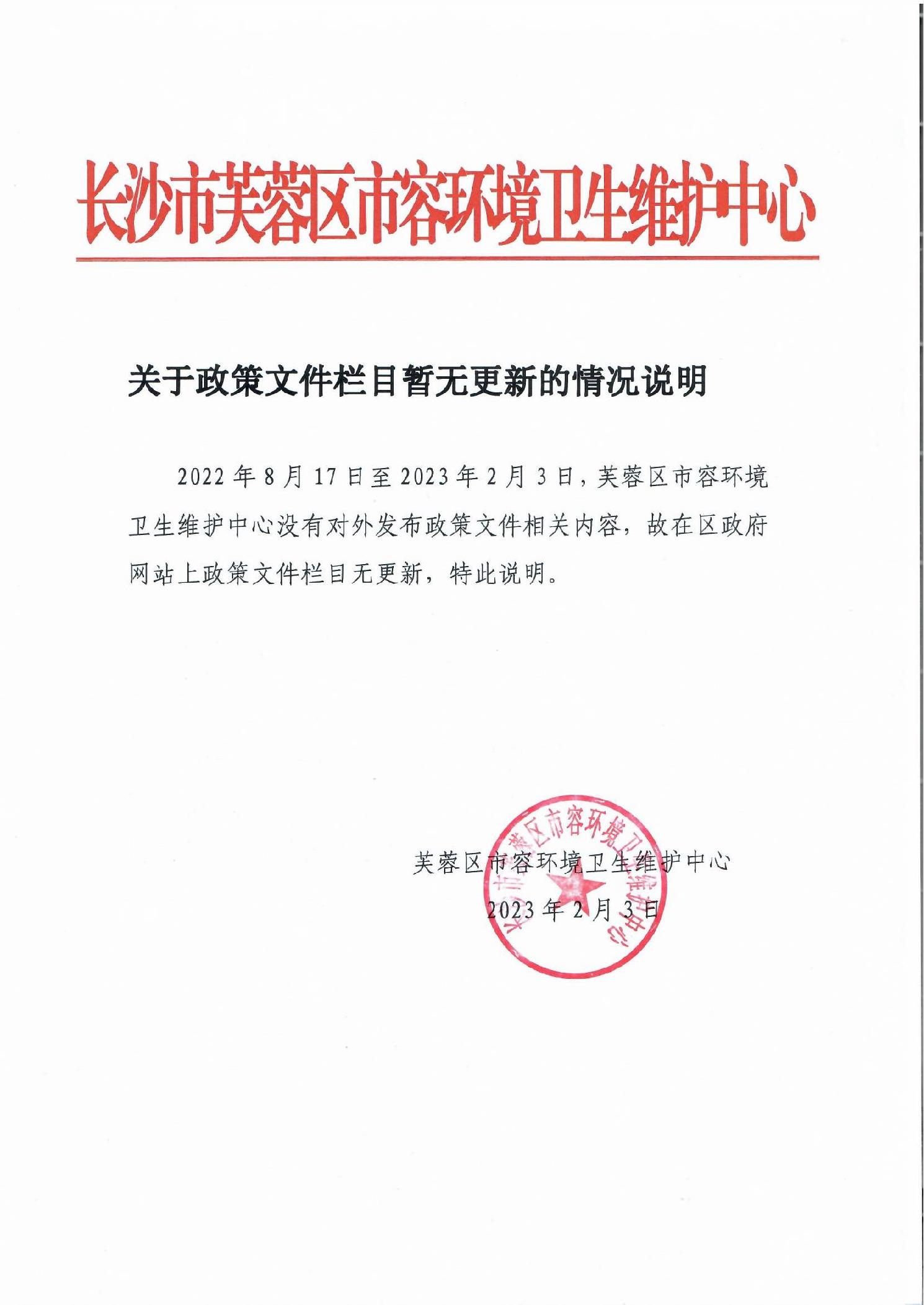 关于政策文件栏目暂无更新情况说明