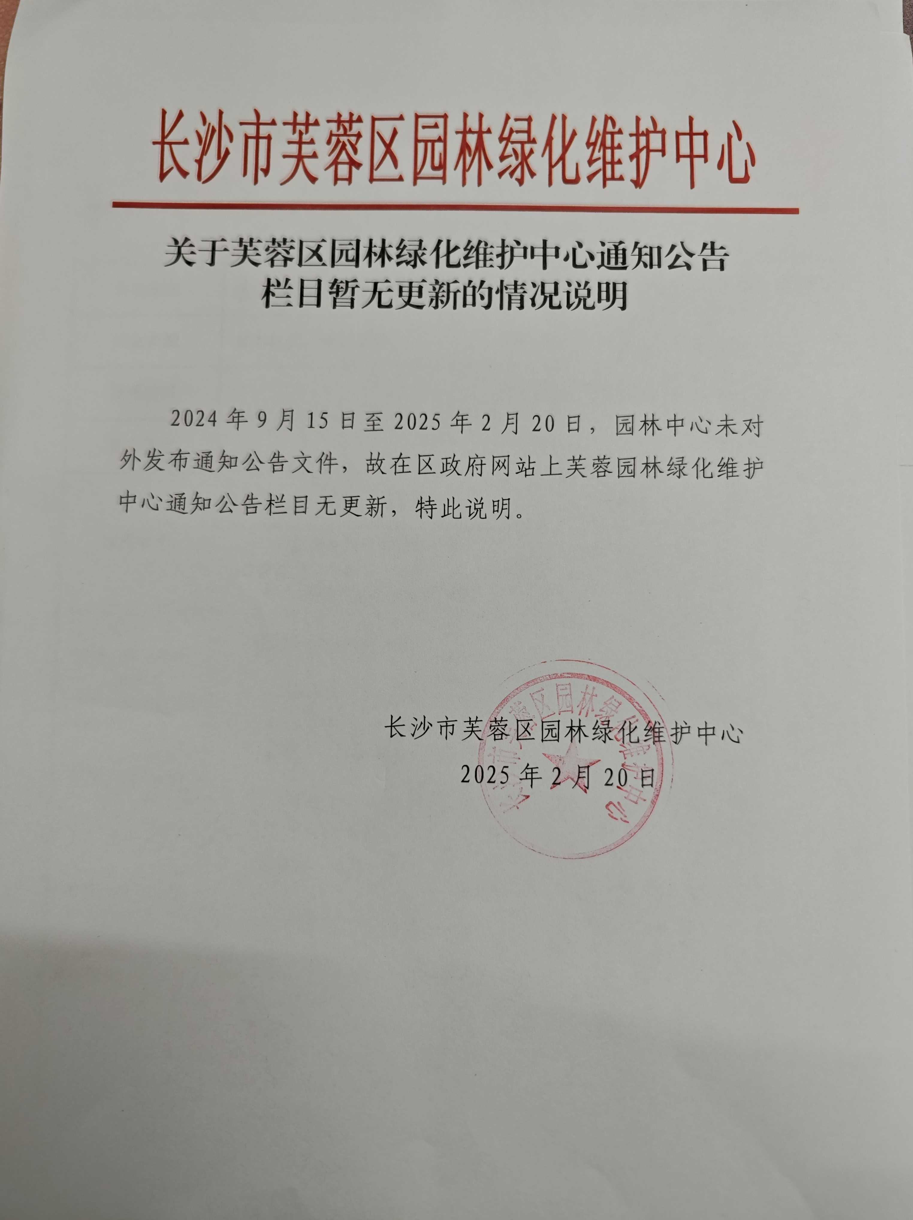 关于芙蓉区园林绿化维护中心通知公告栏目暂无更新的情况说明