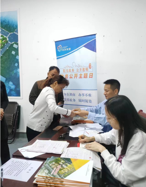 2023年10月26日上午,芙蓉区征地服务中心在三号安置点二期金塘家园小区开展政务公开主题日暨“湘易办”推广活动。