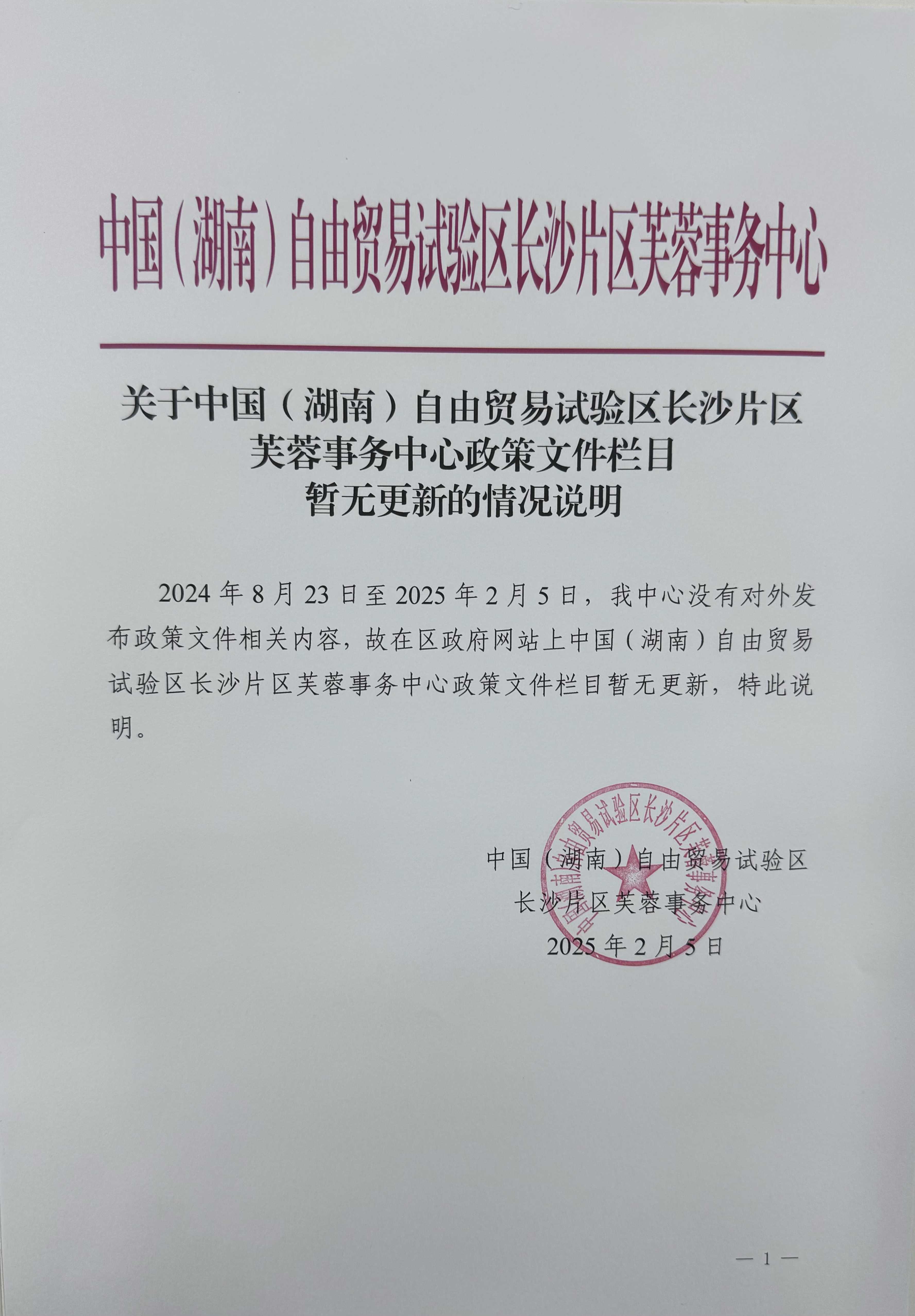 关于中国(湖南)自由贸易试验区长沙片区芙蓉事务中心政策文件栏目暂无更新的情况说明