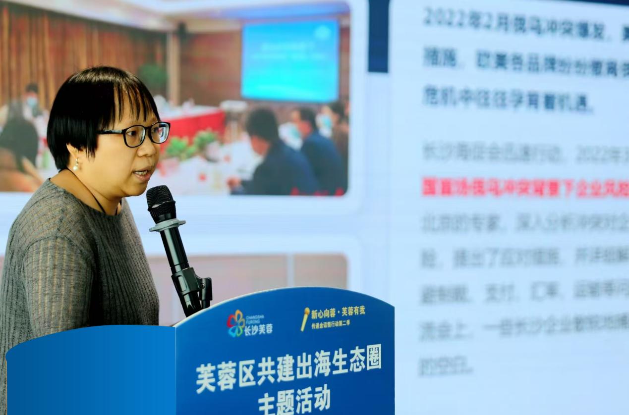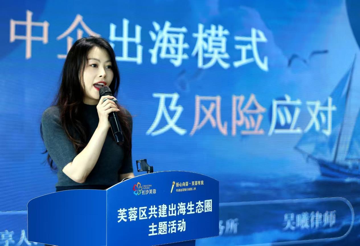 芙蓉区侨界青年委员会副会长、北京盈科(长沙)律师事务所高级合伙人吴曦就“中企出海模式及风险应对”作了分享,从中企出海的实战路径、中企出海的核心风险应对等专业角度,为企业出海提供了极具价值的解读与指导。