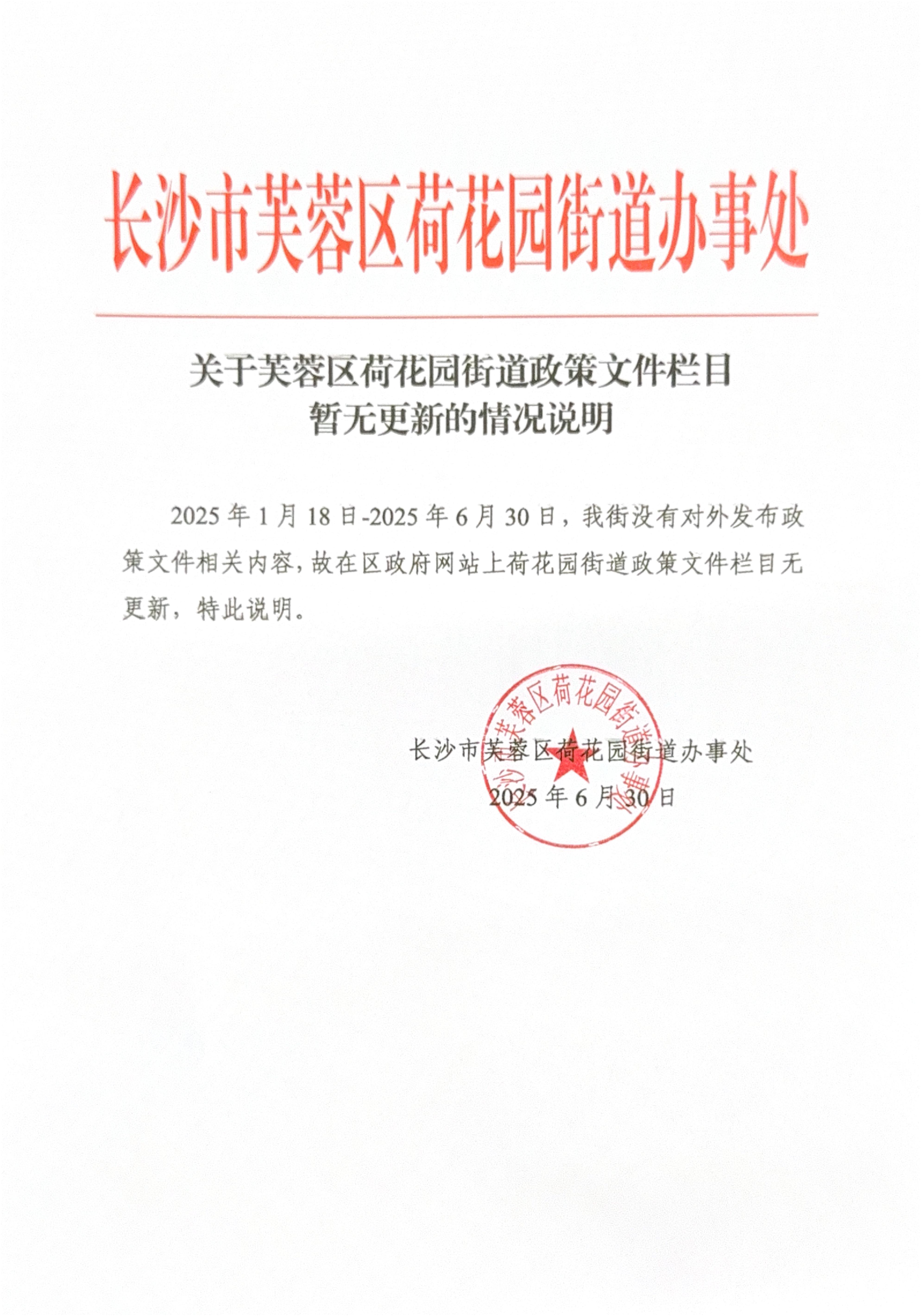 关于荷花园街道政策文件栏目暂无更新的情况说明