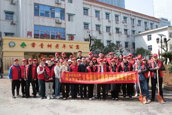 人勤春来早,植绿正当时。2024年3月19日上午,五里牌街道燕山街社区党委联合共建单位湖南省商务厅在常青树老年公寓、燕山街东口及辖区内其它绿化区域开展“绿色共建,和谐共享”义务植树主题党日活动,在职党员志愿者共50余人参加。植树活动现场,老人们坐在院内沐浴着温暖的阳光,护工为老人们唱着歌儿、拉着家常,好不热闹。