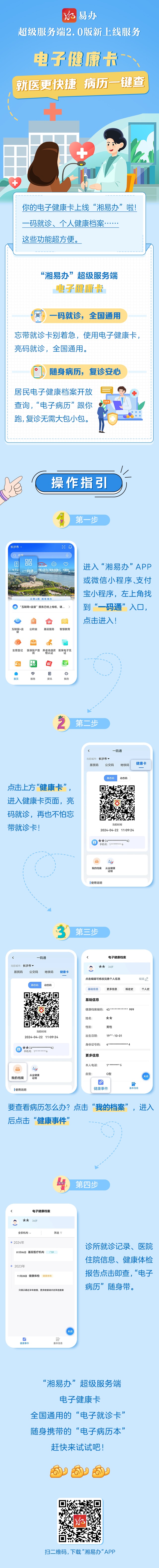“湘易办” 2.0丨电子健康卡,就诊“一码通”