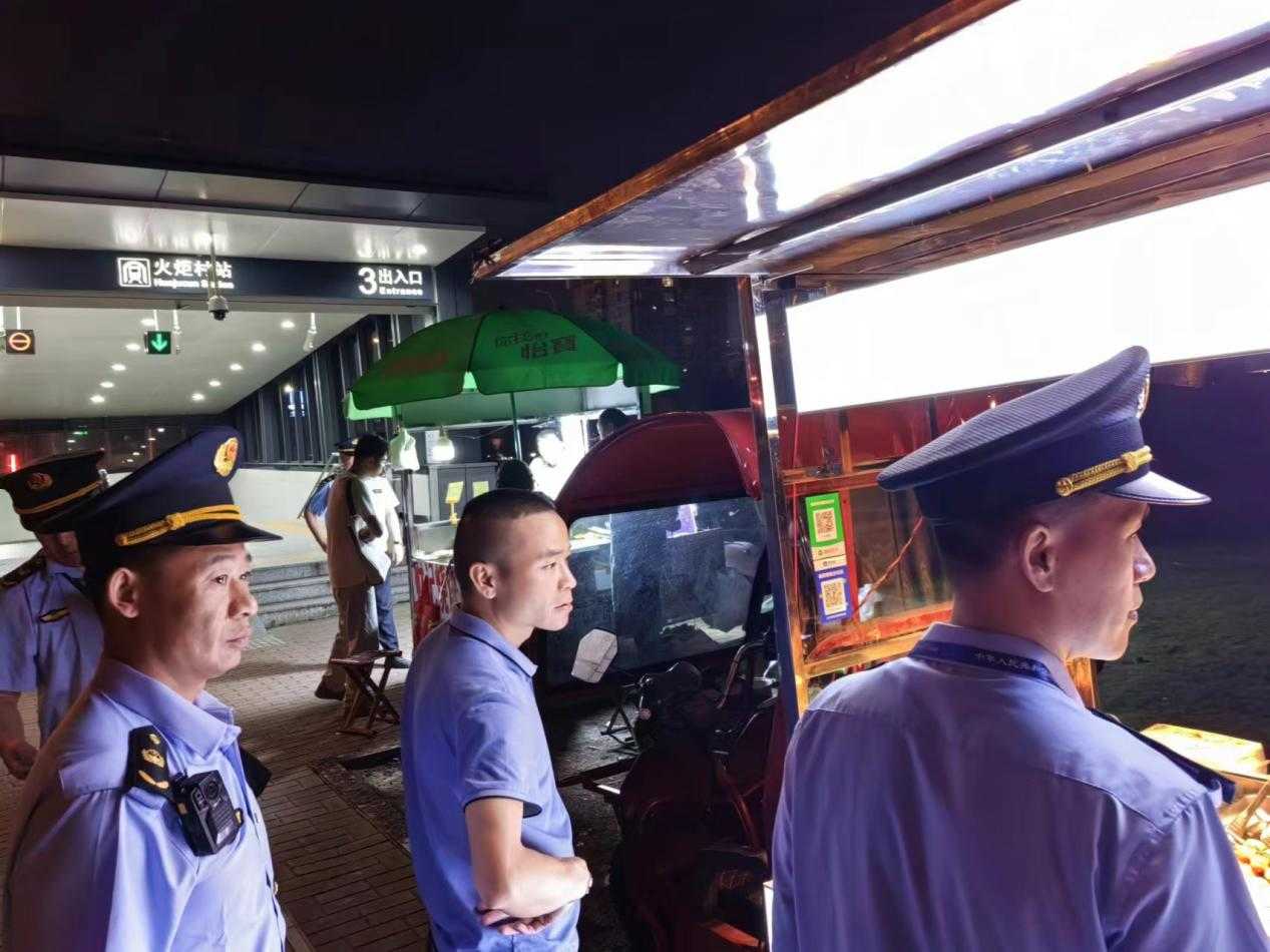 行动中,执法人员对夜市摊贩是否正常使用油烟净化器、安全用气用电、环境卫生、经营秩序等开展执法检查,向夜市摊点经营户宣传大气污染的严重性及城市管理相关法律法规,对占道经营摊点进行清理整治,对违规排放油烟、违规使用液化气罐的摊贩进行处罚,确保小吃摊点油烟净化器安装合格、运行正常、油烟排放达标。
